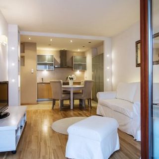 Przestronny, nowocześnie urządzony, przytulny apartament Royal znajduje się w sąsiedztwie Alei Szucha i ulicy Marszałkowskiej. Jest to idealna „przystań” zarówno na krótkie jak i dłuższe odwiedziny w stolicy. Do dyspozycji gości jest w pełni wyposażony aneks kuchenny połączony z częścią wypoczynkową, łazienka z dużą wanną, klimatyczna sypialnia jak i obszerny balkon. W ofercie apartamentu jest bezpłatny bezprzewodowy Internet oraz dostęp do kanałów telewizji kablowej. Dodatkowym atutem jest bezpłatne miejsce garażowe oraz całodobowa ochrona budynku.