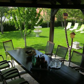 Mieszkanie znajduje się na pierwszym piętrze i oferuje piękny widok z balkonu. Może on pomieścić 9 osób dorosłych, w przypadku korzystania z rozkładaną sofą w salonie i / lub łóżko na kółkach w pokoju. Duży ogród z kuchni na zewnątrz, grill i siedzenia na świeżym powietrzu to wspaniały dodatek do mieszkania, gdzie goście mogą odpocząć i cieszyć się. Obiekt oferuje łatwy dostęp do głównych dróg i do transportu publicznego (5 min pieszo) i jest tylko 20 km od autostrady, jeśli ma spełniać cały region.