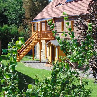 Obiekt położony na Pogórzu Izerskim, 10km od uzdrowiska Świeradów Zdrój;5 km od mmagicznego Zamku Czocha przy zalewie leśniańskim.Oferujemy pokoje z łazienkami i aneksem kuchennym;posiadamy salę rekreacyjną(Sylwester,uroczystości rodzinne itp.)