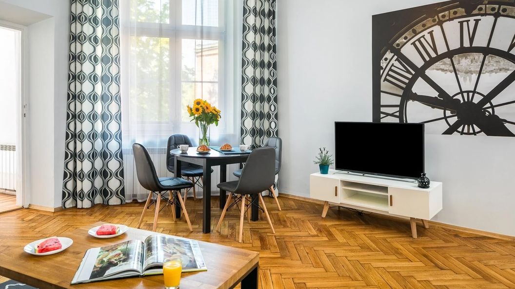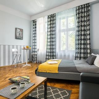 Na dzień dobry zdjęcie głównego obiektu się zgadza ale nikt nie pokazał jak wygląda obiekt do którego się wchodzi przez podwórze. Moje córki chciały uciec - strasznie i przerażająco. Po wejściu do obiektu okazało się, że to nie wszystko🙈 Na klatce schodowej przeważa zapach stęchlizny i zapach mysz. Schody bardzo kręte drewniane, które były powyszczerbiane a w poręczy brakowało paru trelek. W końcu po dotarciu na 3 piętro okazało się że nie otrzymaliśmy tego apartamentu, który rezerwowaliśmy. Miał być apartament na 4 osoby, na sofie mogły usiąść tylko 2 os. a stolik był też tylko dla 2 osób i to ma być rodzinny apartament?🙈 Byliśmy jednak zmęczeni podróżą i bardzo głodni więc udaliśmy się szybko na miasto. Po powrocie wieczorem rozczarowań nie było końca. Okazało się że w całym apartamencie jest strasznie zimno bo nikt nie odkręcił wcześniej grzejników, na dodatek grzejnik w łazience nie grzał. Potem okazało się, że nie działa telewizor. Niestety po wykonaniu telefonu do obsługi okazało się że tego dnia nikt już nam nie pomoże. Podsumowując Nie polecam tego obiektu chyba że ktoś jest głodny wrażeń.