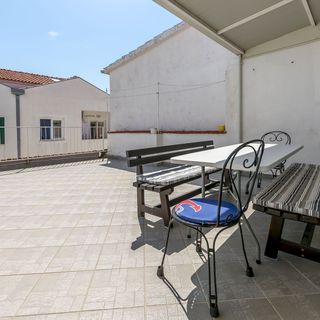 The owner was welcoming, always available, nothing was a problem. The apartment was really clean and very big, with everything you could need for a family holiday (also big stand-alone freezer, emergency sewing package). It is really near the city centre and the beach. The daily shop is around the corner. Air-condition for each bedroom! I really love that the terace is partly under the roof for hiding the drying clothes when it rains. We were really lucky the find this place, we will probably arrive for the holidays! - Could be a problem: The beds are quite heavy, if you need to move them (and count on that when making reservation) to another room (eg two families with 5 and 3 members), it is quite impossible - but maybe it could be arranged with the owner, we did not ask. Missing temporary parking place at the Adriagate office when check-in - really the worst thing about the accomodation :) Suggestions for owner (not a big deal): The sea view is only from two bedrooms and is very limited (not a problem, but it was filtered as an apartment with seaview). The rooms are quite dark, without good lights. The safebox not available. It should be said that it is the 2nd floor, stairs only (could be problem for somebody). I would appreciate curtains in the kitchen - there is only the curtains to prevent the light not the sight of the neightbors.