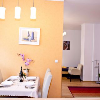październik 2019Hotel Sklep má výbornú polohu na začiatku Žižkova, iba 1 zastávku električky od Hlavnej stanice (zastávka Husinecká). Apartmán bol priestranný, čistý a dobre vybavený. Súčasťou budovy hotela je aj reštaurácia a piváreň, ktoré sú dostupné aj verejnosti.