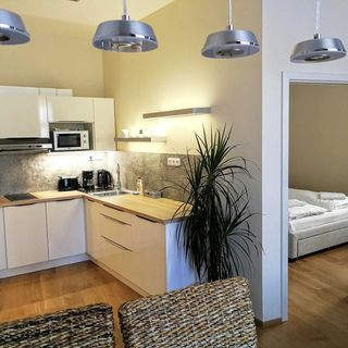 Nedostatečně vybavená kuchyň, neuklizeno po dělnících, ručníky sice nové,ale nevyprané.To málo nádobí nové, ale opět neumyté -oddělávala jsem ze všeho ještě nálepky z obchodu, pánvička stará asi vyřazená z restaurační kuchyně, nefungovala digestoř, netekla teplá voda, dostali jsme jiný apartmán než jsme si objednali. Byli jsme tam jak pokusní králíci a opravdu mě nebavilo s každou blbostí chodit na recepci!!! Za tu cenu bych očekávala jiný komfort. Nedoporučuji!