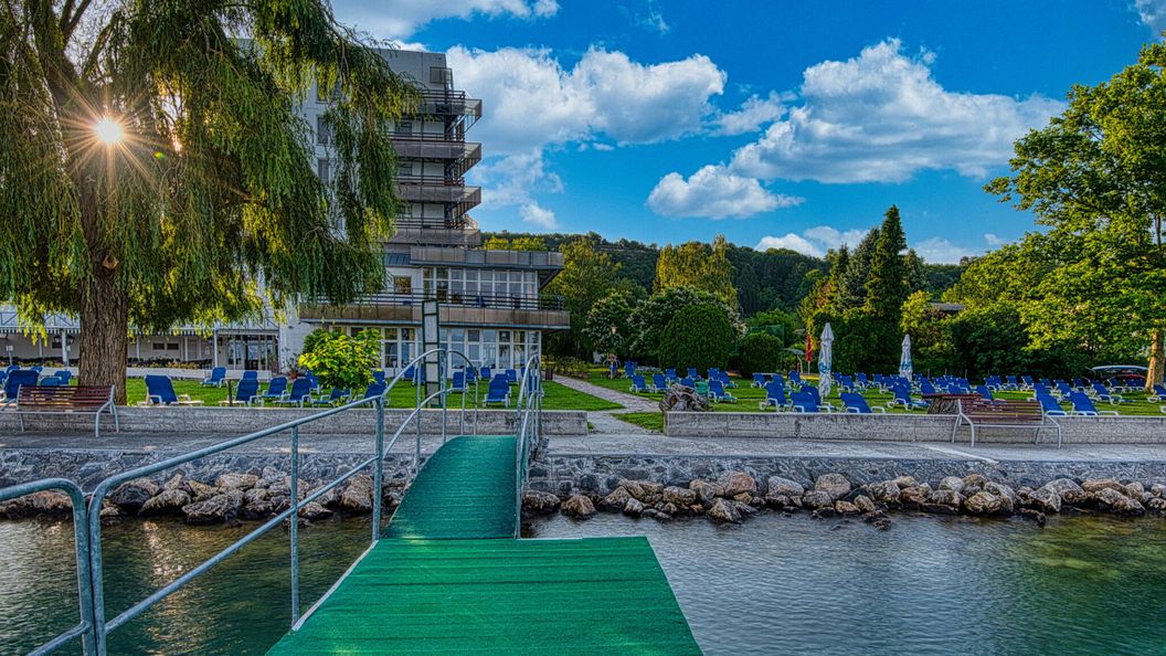 lipiec 2025A Balaton partján álló 5 emeletes késő szoci stílusú panelház. A szállodával nincs semmi baj, csak valahogy semmit sem ad. Ott vagy és kész. Nap közben lesed a Balatont, bemész úszol kijössz, ismétel. Este csak a lesés marad. Igen erősen nyugger hely.