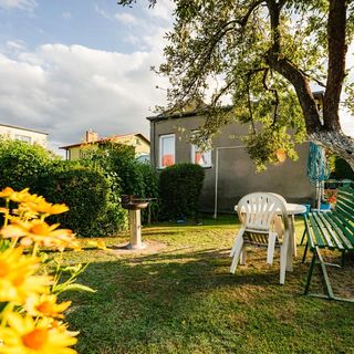 Przestrzeń wokół domku jest w pełni do dyspozycji gości. Cała posesja została ogrodzona, co gwarantuje prywatność i bezpieczeństwo. Na terenie obiektu znajduje się ogród oraz przygotowane miejsce do grillowania. Dla zmotoryzowanych gości przewidziano także bezpłatny parking na dwa samochody.