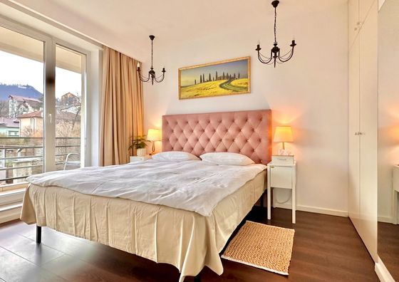 Predeal Pokaż na mapie 10 km od Poiana Brasov Darmowy parking Jacuzzi Sauna Plac zabaw WiFi Apartament 6-osobowy Apartament: 97 m2 3 łóżka podwójne