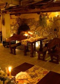 KOLIBA POD CZARCIM KOPYTEM to miejsce w którym spędzone chwile staną się niezapomniane nie tylko dla podniebienia ale i duszy. Do dyspozycji gości oddaje się trzy przytulne sale restauracyjne. Pierwsza z nich "Sala kominkowa" to mijesce gdzie znajduje się duże palenisk