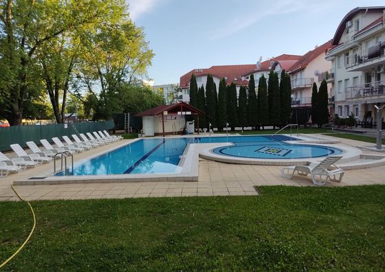 Hajdúszoboszló Pokaż na mapie 18 km od Mikepércs Darmowy parking Basen Jacuzzi Sauna Plac zabaw Przyjazny zwierzętom WiFi Apartament 2-osobowy Apartament: 24 m2 1 łóżko podwójne