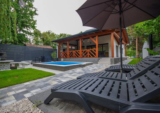 Natychmiastowa rezerwacjaSzarvas Pokaż na mapie 48 km od Nagyrév Darmowy parking Basen Jacuzzi Sauna WiFi Domek 8-osobowy Domek: 8 łóżek pojedynczych