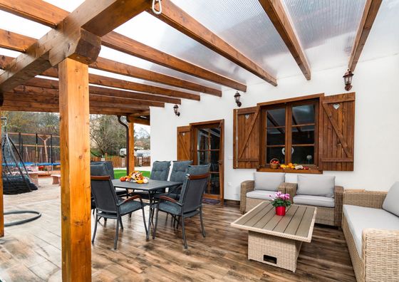 Natychmiastowa rezerwacjaFony Pokaż na mapie 8,4 km od Arka Darmowy parking Jacuzzi Plac zabaw WiFi Domek 10-osobowy Domek: 5 łóżek podwójnych