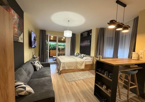 Harkány Pokaż na mapie 4,4 km od Kovácshida Darmowy parking Przyjazny zwierzętom WiFi Apartament 3-osobowy Apartament: 32 m2 2 łóżka (1 pojedyncze, 1 podwójne)