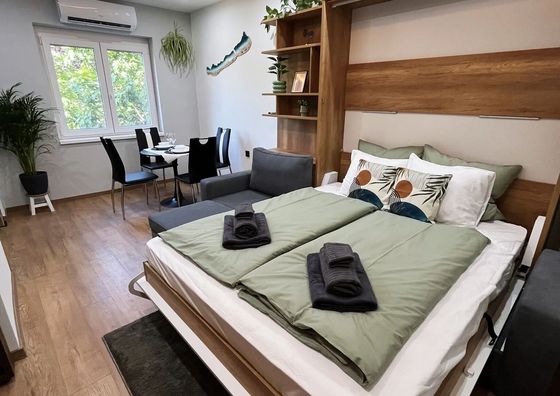 Natychmiastowa rezerwacjaVeszprém Pokaż na mapie 21 km od Várpalota Darmowy parking Jacuzzi WiFi Apartament 6-osobowy Apartament: 47 m2 3 łóżka podwójne