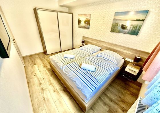 Natychmiastowa rezerwacjaSiófok Pokaż na mapie 4,1 km od Sóstó Darmowy parking Basen Jacuzzi WiFi Apartament 2-osobowy Apartament: 31 m2 1 łóżko podwójne
