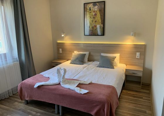 Natychmiastowa rezerwacjaGyula Pokaż na mapie 39 km od Körösladány Darmowy parking Sauna Plac zabaw WiFi Pokój 2-osobowy Pokój: 15 m2 2 łóżka pojedyncze