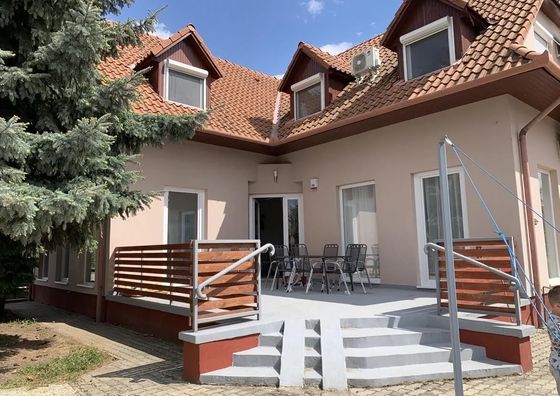 Natychmiastowa rezerwacjaBalatonlelle Pokaż na mapie 32 km od Somogyjád Darmowy parking Plac zabaw Przyjazny zwierzętom WiFi Apartament 14-osobowy Apartament: 220 m2 8 łóżek (2 pojedyncze, 6 podwójnych)